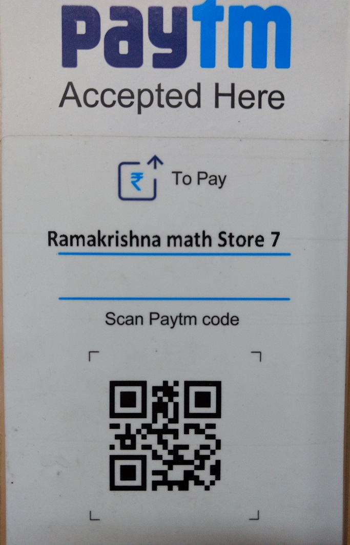 Step 1: Please scan QR Code of Ramakrishna Math Store 7 using Paytm application.Or you may scan the Bharat QR code using any Application like Google Pay etc.